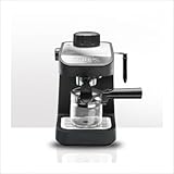 Easy to operate steam machine. Glass carafe with lid and handle is ideal in the preparation of popular espresso drinks, keeps espresso warm while frothing milk for cappuccinos and lattes. Removable metal drip tray. Steam nozzle quickly froths milk and is easily controlled by oversized dial. Illuminated On Off switch. 800W. Dimensions: 11'' H. x 8.5'' W. x 9.38'' D. Black silver.